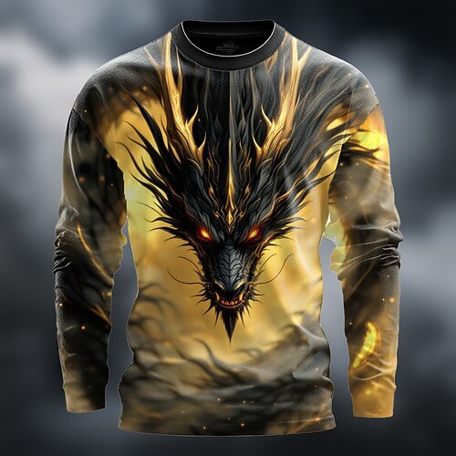 Herren Drache 3D T Shirt Langarm T-Shirt 3D-Druck Rundhalsausschnitt Hemd Mode Fantasie Straße Lässig Täglich Wasserblau Gelb Grün Sommer Frühling Bekleidung S M L XL XXL XXXL