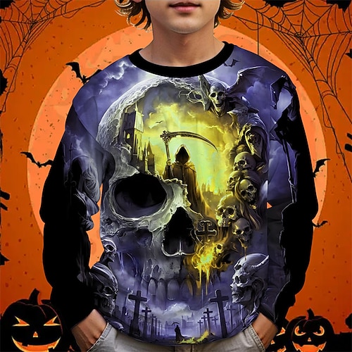 Halloween Jungen 3D Grafik Sweatshirt Langarm Frühling Herbst Mode Basic Kinder 4-12 Jahre Rundhalsausschnitt Outdoor Lässig Täglich Normale Passform
