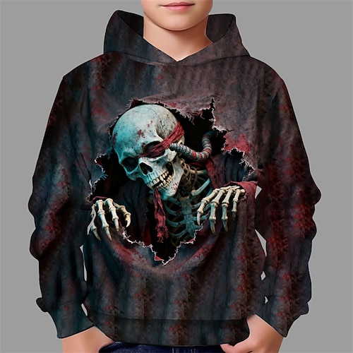 Halloween Jungen 3D Schädel Kapuzensweatshirt Langarm Frühling Herbst Mode Streetwear Kinder 4-12 Jahre Mit Kapuze Outdoor Lässig Täglich Normale Passform