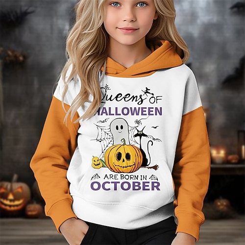 Halloween Mädchen 3D Kürbis Kapuzensweatshirt Langarm Herbst Winter Mode Niedlich Basic Kinder 4-12 Jahre Mit Kapuze Outdoor Lässig Täglich Normale Passform