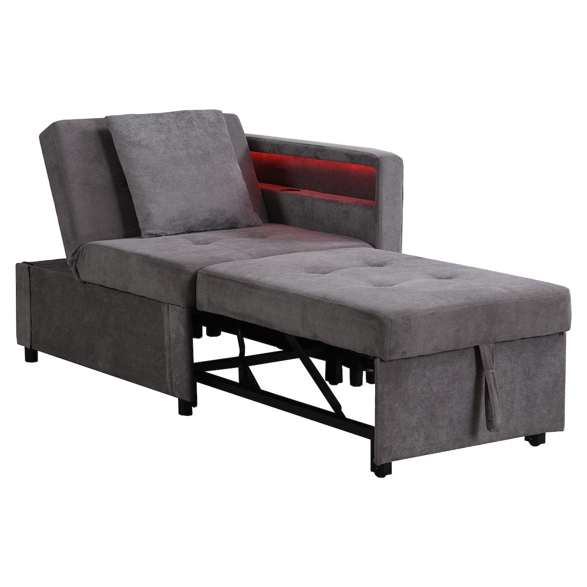 OKWISH Schlafsofa 3in1 177x68x65 Dunkelgrau mit verstellbarer Rückenlehne, LED-Beleuchtung, USB Typ-C, Leinenstoff, Multifunktional
