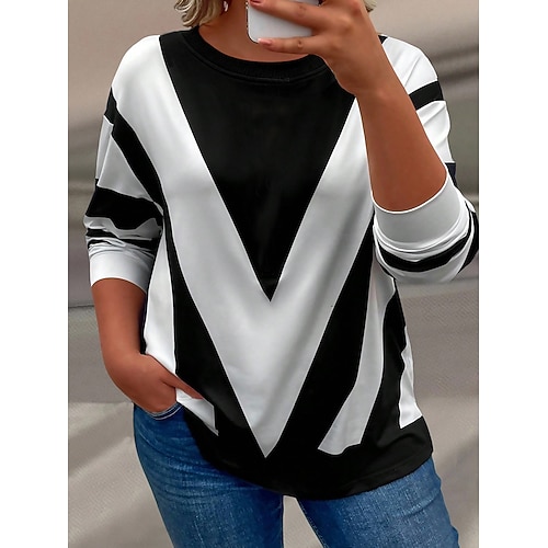 Per donna Taglia grossa Top Felpa Pullover Blocco di colori Stampato Manica Lunga Girocollo Casual Quotidiano Poliestere Autunno Inverno Nero Marrone