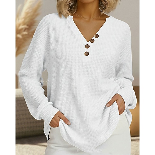 Per donna Felpa pullover Top casual Manica Lunga Top Athleisure Scollo a V Tinta unita All'aperto Vacanze abbigliamento sportivo Abbigliamento sportivo Rosso bordeaux Nero Bianco
