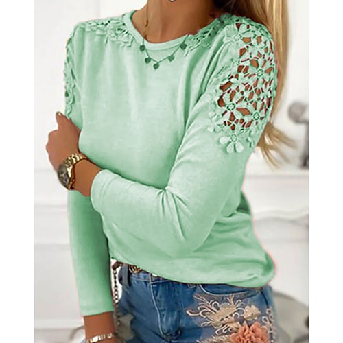 Per donna Blusa Semplice Elegante Casual Manica Lunga Girocollo Top Regolari Quotidiano Ferie Uscire Traforato Nero Verde Grigio Autunno Inverno