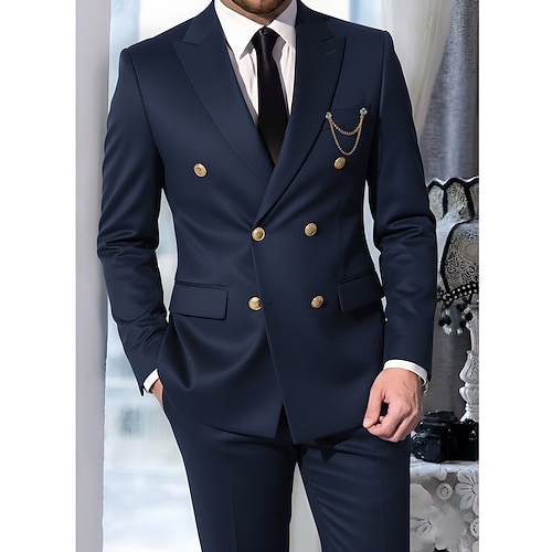 Uomo Matrimonio Feste Completi Bavero a lancia Nero Blu Moda Formale A righe Vestibilità standard 3 pezzi Monopetto Due Bottoni