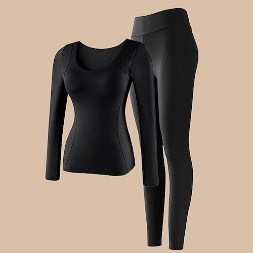 Damen Kompressions-Workout-Baselayer Kaltes Wetter Oben Unten Basisschicht oben und unten Kombination Winter Schwarz Khaki sportlich Laufen Fitness Hohe Taille Fleece-Futter Ultraweich Langarm Sport