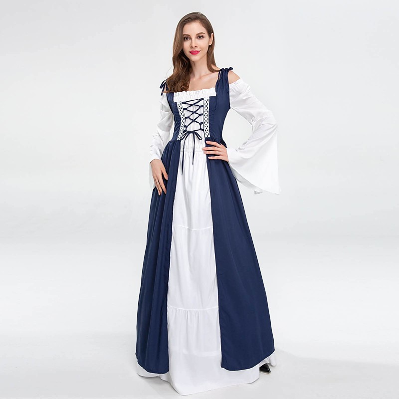 Retro Vintage Medieval Renaissance Dress Prom Dress Queen Viking Fancy Dress Women's Celtic Royal Halloween Carnival Performance Party LARP Adults' Dress