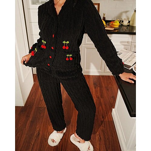 Per donna Pigiama Abbigliamento da Casa Set Pigiama Flanella Caldo Moda Frutta Tasca Elastico in vita Pantalone Vacanza Casa Manica Lunga Scollo a V Nero Bianco Giallo Rosa Rosso Autunno Inverno