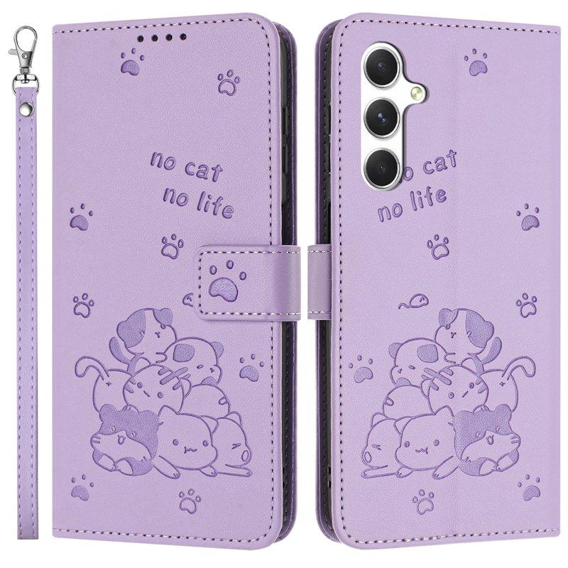 Samsung Galaxy A35 5G Fodral Äkta Läder Katttryck - Lila