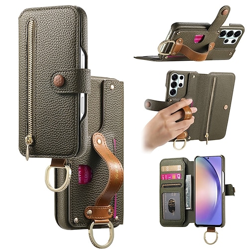 Handy Hülle Handyhüllen Für Samsung Galaxy S26 Ultra Plus S25 S24 S23 S24 FE S22 S21 Ultra Plus S20 A55 5G A35 5G Flip-Cover Mit Ständer Magnetisch Mit Handgelenkschlaufe Retro TPU PU-Leder