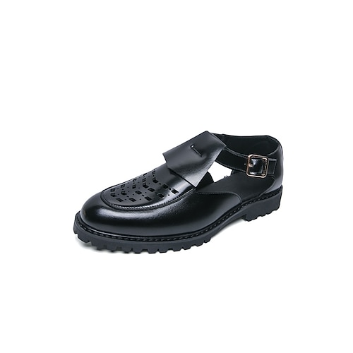 sandali da uomo con fibbia in similpelle, eleganti e comodi per l'abbigliamento da resort e gli eventi all'aperto