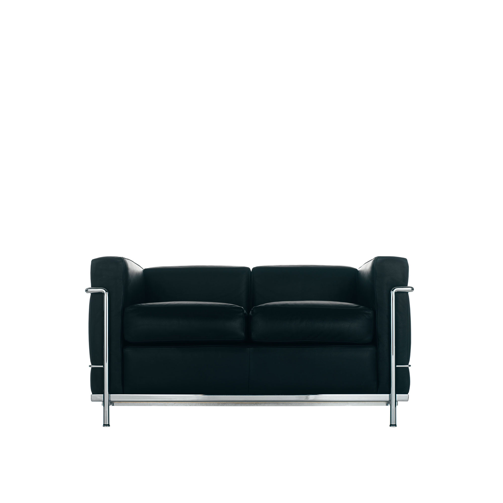 Cassina - LC2 2-Seater Sofa Chrome Frame, Feather Pad, LCX 13X414 - Soffor - Charlotte Perriand,Le Corbusier,Pierre Jeanneret - Svart