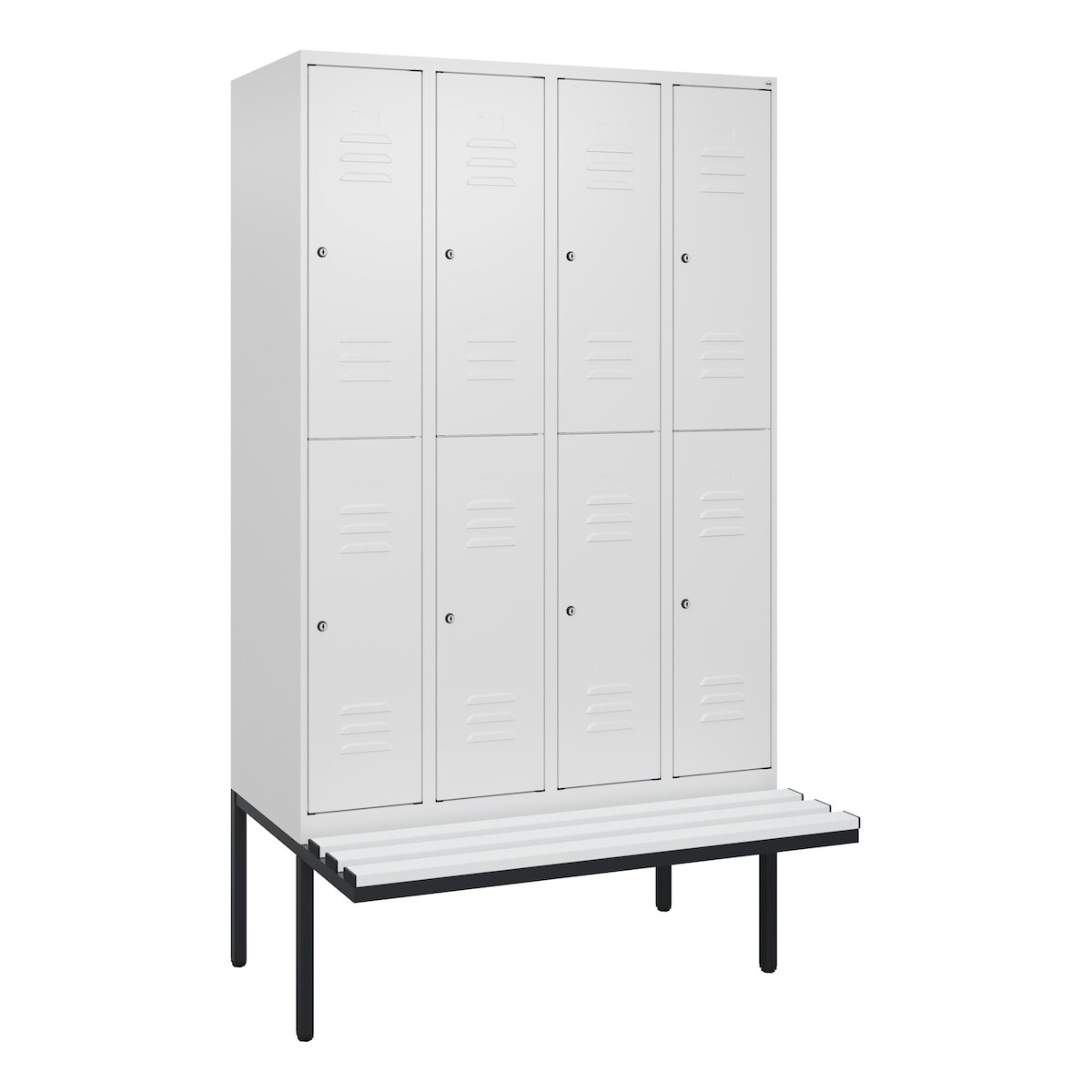 C+P Spind Classic PLUS, Buche schwebende Sitzbank, 8 Abteile, HxBxT 212x120x82cm, Sicherheitsdrehriegel, Verkehrsweiß von PROREGAL