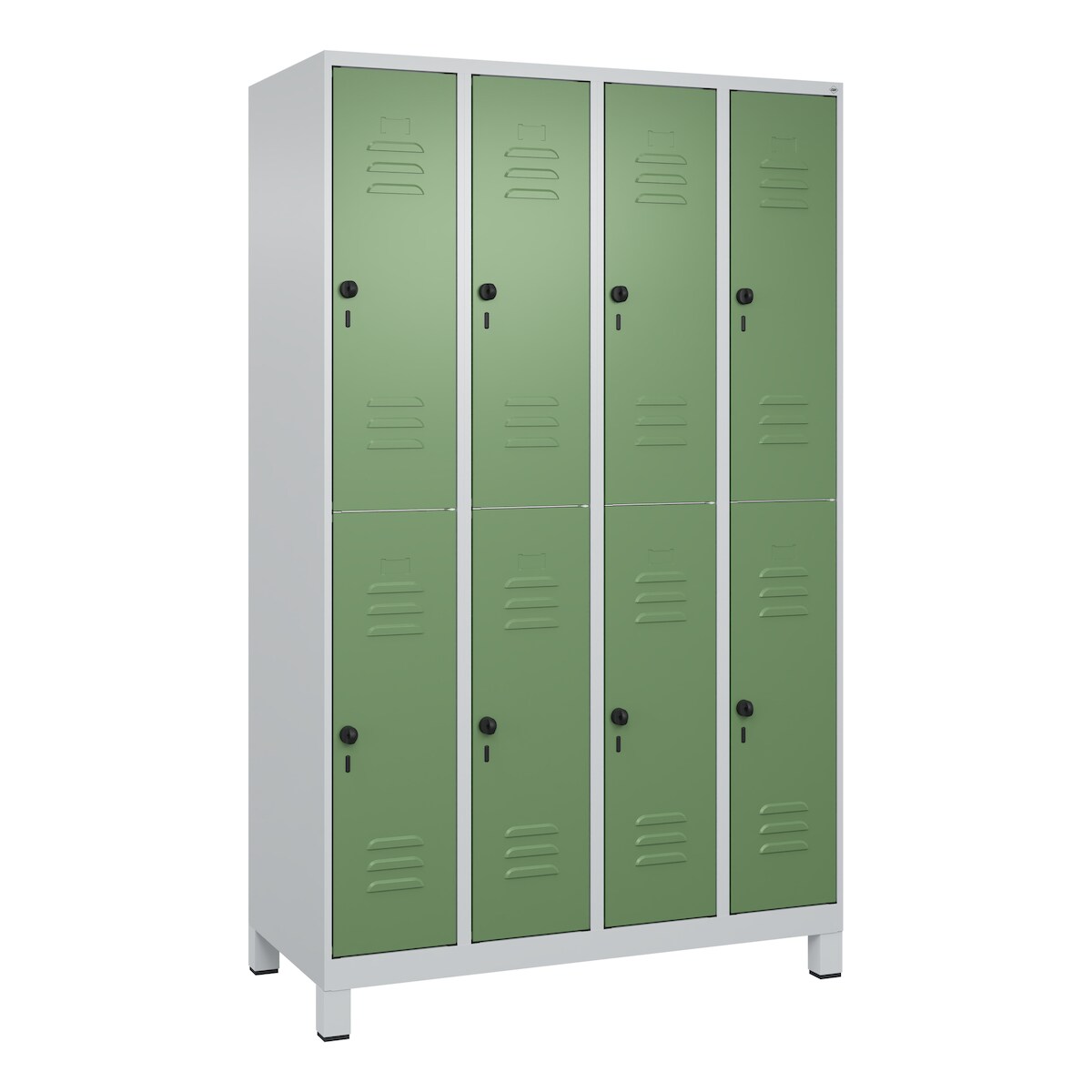 C+P Spind Classic PLUS, Füßen, 8 Abteile, HxBxT 195x120x50cm, Sicherheitsdrehriegel, Hellgrau/Resedagrün von PROREGAL
