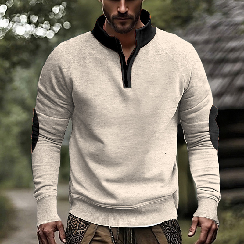 Men's Sweatshirt Quarter Zip Sweatshirt Apricot Black Navy Blue Camel Light Grey Half Zip Color Block Patchwork Sports Outdoor Daily Holiday Polyester Streetwear Basic Casual Spring Fall Clothing