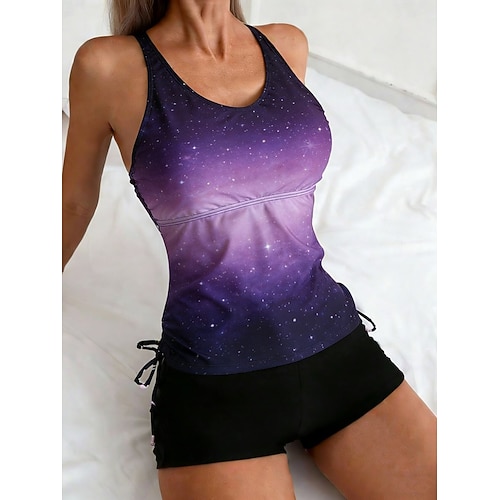 Per donna Costume da bagno Tankini 2 pezzi Stampato Boyleg Asciugatura Rapida Elastico Senza Maniche Costume da Bagno Costume da bagno Surf Spiaggia Nuoto Estate