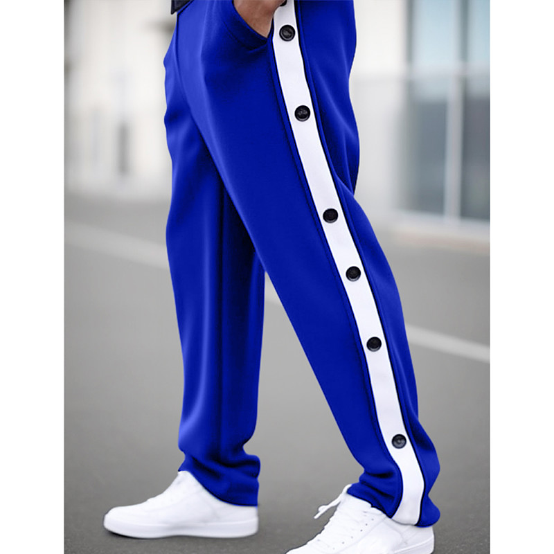 Men's Sweatpants Joggers Tear Away Pants Trousers Straight Leg Sweatpants Drawstring Elastic Waist Side Button Plain Comfort Breathable Full Length Outdoor Daily Going out Fashion Casual Black Blue
