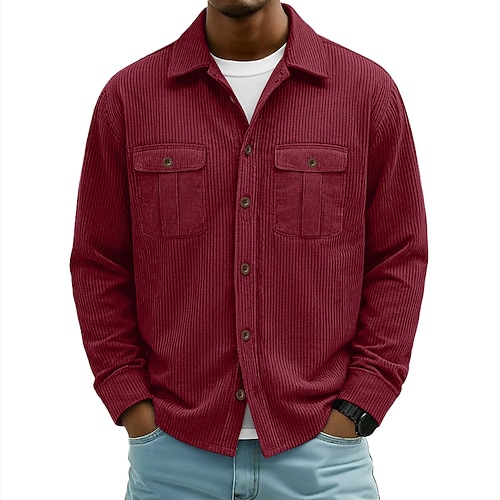 Per uomo Camicia Camicia casual Camicia di Velluto a Coste Camicia con Bottoni Blu Nero Vino Blu marino Verde Manica Lunga Tinta unica Bavero Casuale Quotidiano Tasca Frontale Abbigliamento Caldo