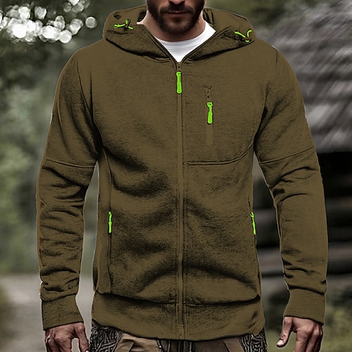 Per uomo Felpa con cappuccio Felpa con cappuccio a zip intera Nero Bianco Vino Verde militare Blu marino Con Cappuccio Semplice Cerniera Tasca Sport Outdoor Quotidiano Ferie Poliestere Streetwear