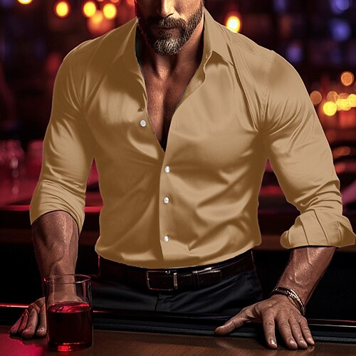 Per uomo Camicia Camicie Camicia con bottoni Liscio Matrimonio Feste Nero Bianco Rosa Vino Manica lunga Bavero Primavera Autunno Abbigliamento