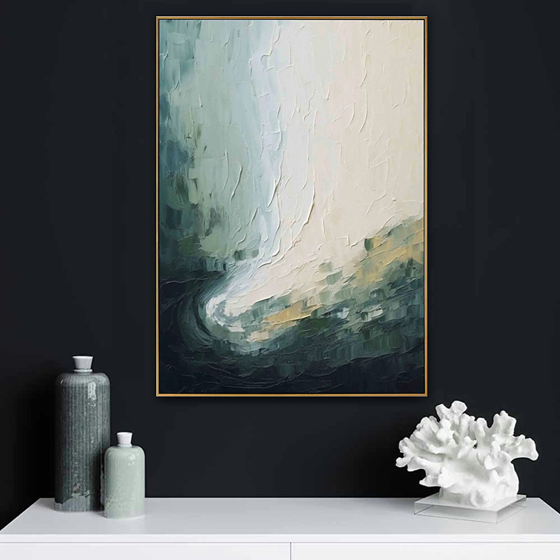Hand painted Abstract Oil Painting on Canvas Modern Abstract Wall Art Original Oil Painting Living Room Wall Art Green Sky Wall Art Gift for Her Room Bedroom Decor