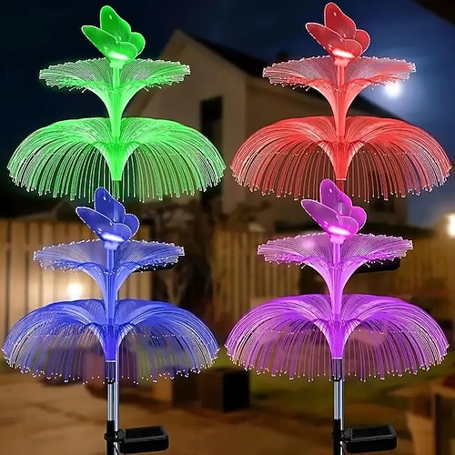 4PCS Solar LED Qualle Schmetterling Rasenlicht Außen Baumstern Gartenlicht RGB Farbwechsel Party Hof Rasen Garage Gehwegdekoration Solar Landschaftslicht