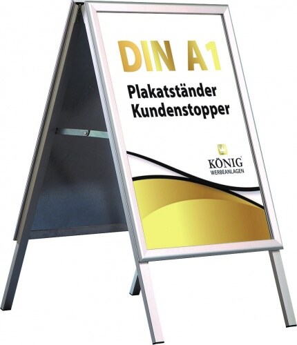 Dreifke Plakatständer Keitum DIN A1 silber | Ecken auf Gehrung | beidseitig für 2 Plakate | Rückwand aus verzinktem Stahlblech | entspiegelte Schutzscheibe