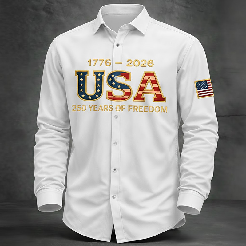 Men's US Flag Patriotic America's 250th Anniversary Shirt Button Up Shirt Long Sleeve Vintage Retro Holiday Casual Daily Spring Fall Turndown 3D Print Linen Like Shirt White Red Dark Blue