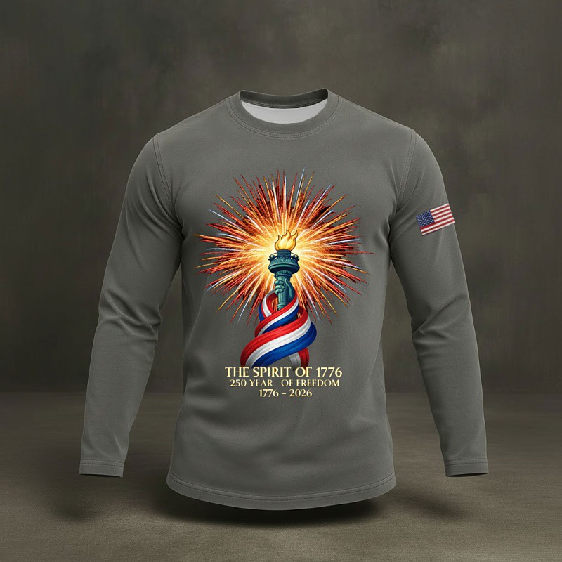 America's 250th Anniversary Men's Graphic Flag Torch T Shirt Tee Top Long Sleeve Shirt Long Sleeve T shirt 3D Print Crew Neck Shirt Fashion Daily Basic Daily Vacation Street Navy Blue Khaki Army Green