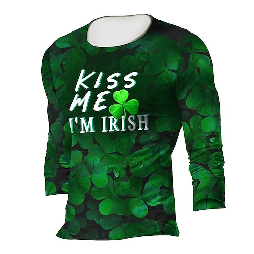 maglietta da uomo per il giorno di San Patrizio grafica con stampa 3D lettera del giorno di San Patrizio girocollo strada stampa quotidiana top a manica lunga designer di base grande e alto