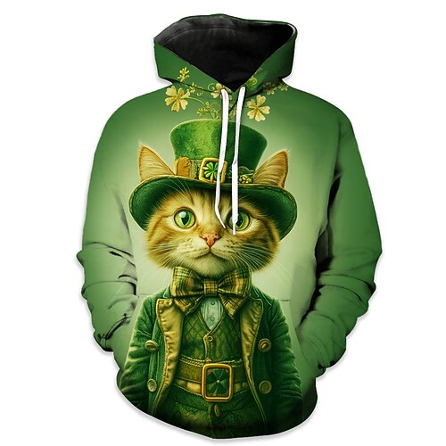 Festa di San Patrizio Gatto Trifoglio irlandesi Felpa con cappuccio Lucky Clover Tasca frontale Grafica Per Da coppia Per uomo Per donna Per adulto giorno di San Patrizio Stampa 3D Feste Casual