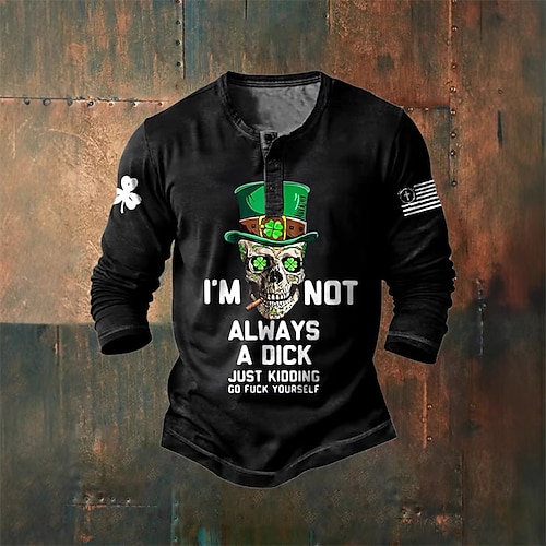 Giorno di San Patrizio San Patrizio Festa di San Patrizio Per uomo Bandiera Teschio Trifoglio Maglietta Maglia Henley Manica Lunga maglietta Stampa 3D Henley Camicia Sport Moda Designer Quotidiano