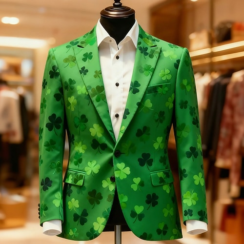 San Patrizio Per uomo Quadrifoglio Giacca blazer Cappotto Confortevole Traspirante Artistico Casual Quotidiano Abbigliamento da sera Festival Stampa 3D Bottoni Multi-tasche Tutte le stagioni