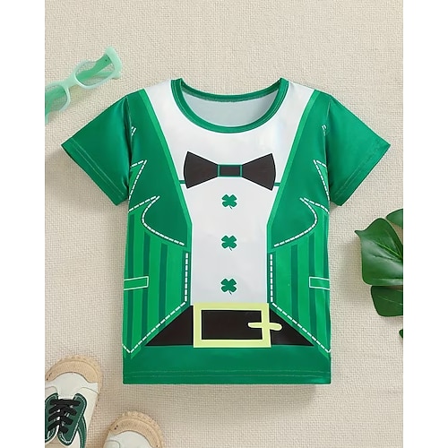 San Patrizio Unisex Ragazzi 3D Grafico Quadrifoglio Maglietta Manica Corta Stampa 3D Estate Primavera Sport Moda Streetwear Bambini 4-12 Anni Girocollo Casuale Quotidiano All'aperto Vestibilit