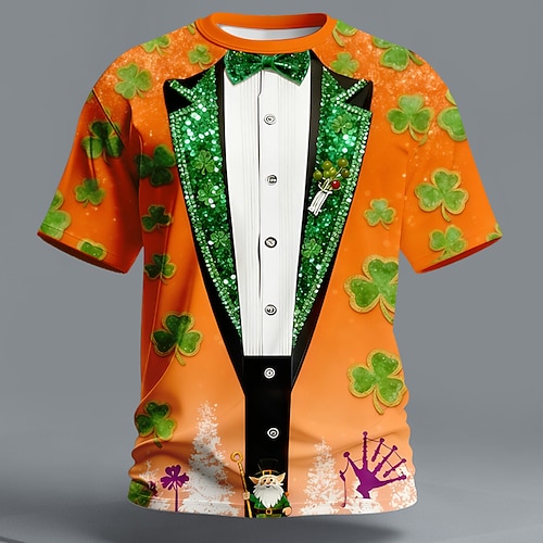 San Patrizio Per uomo Trifoglio Irlandese fortunato Smoking Maglietta Manica Corta maglietta Stampa 3D Girocollo Camicia Designer Casual Club Feste Ferie Viola Arancione Verde Estate Primavera