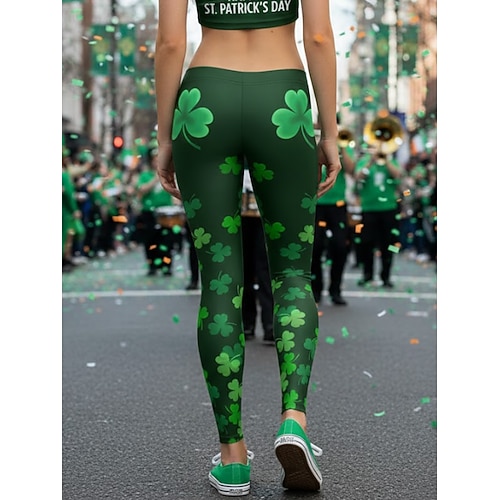 Per donna Leggings Vacanza Vintage Stile Etnico Lunghezza intera Vita AltaPantsGiorno di San Patrizio Grafico Trifoglio Astratto Stampa 3D Comodità Asciugatura Rapida Traspirabilità Elasticizzato