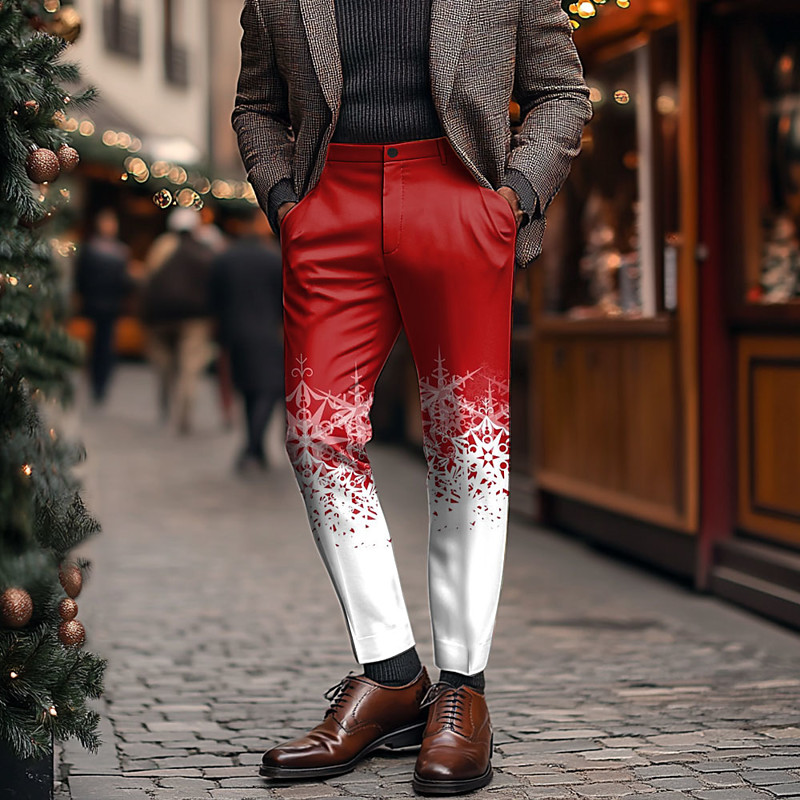 Christmas Men's Snowflake Dress Pants Mid Waist Fashion Casual Outdoor Party Dailywear Zipper Pocket Summer Spring Fall 3D Print Red White