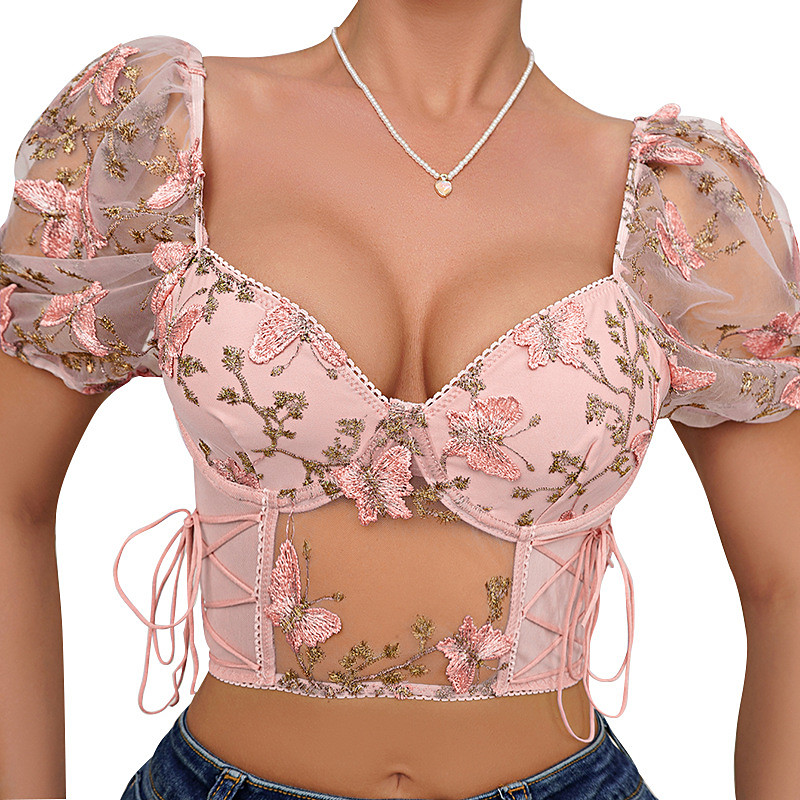 Slim Fit Corset Crop Top Bustier Embroidered Butterfly Fancy Dress Women's Halloween Carnival Party Evening Adults' Top Corset