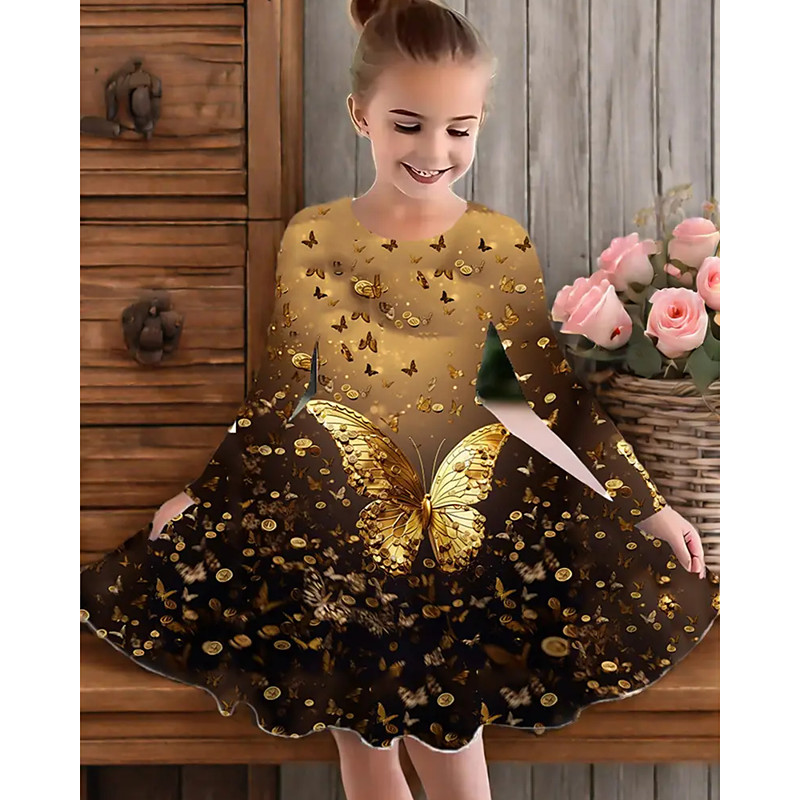 Girls' 3D Animal Butterfly Dress Long Sleeve 3D Print Fall Winter Vacation Daily Holiday Cute Casual Sweet Kids 3-10 Years Swing Dress A Line Dress Above Knee Regular Fit