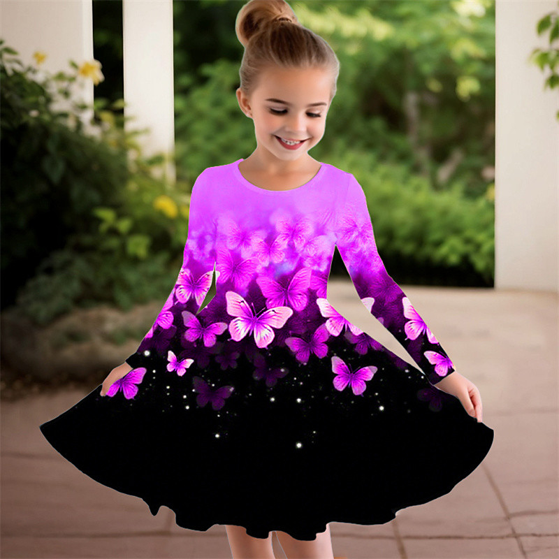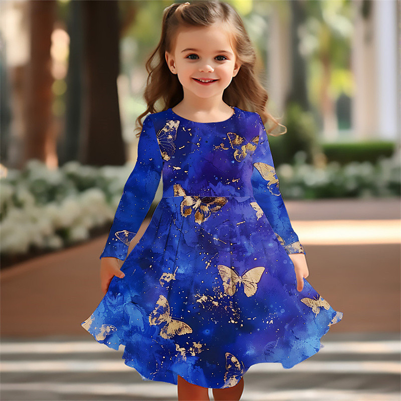 Girls' 3D Butterfly Dress Long Sleeve 3D Print Spring Fall Vacation Sports Outdoor Daily Cute Casual Beautiful Kids 3-12 Years Casual Dress A Line Dress Above Knee Regular Fit