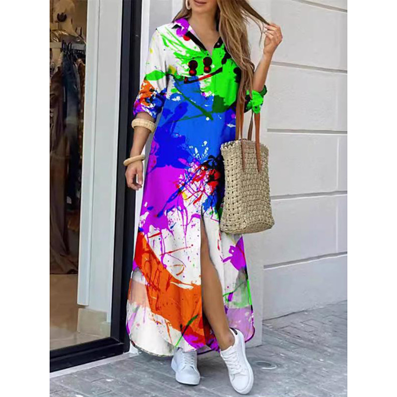 Women's Maxi Dress Shift Dress Casual Daily Date Regular Fit Graphic Butterfly Long Sleeve Shirt Collar White Red Blue Summer Spring Fall