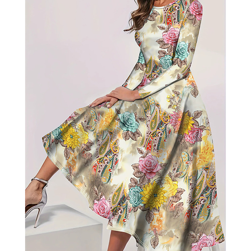 Women's Long Dress Maxi Dress Boho Dress Elegant Vintage Fashion Daily Outdoor Beach Regular Fit Graphic Butterfly Long Sleeve Crew Neck Blue Aqua Blue Yellow Pink Spring Autumn