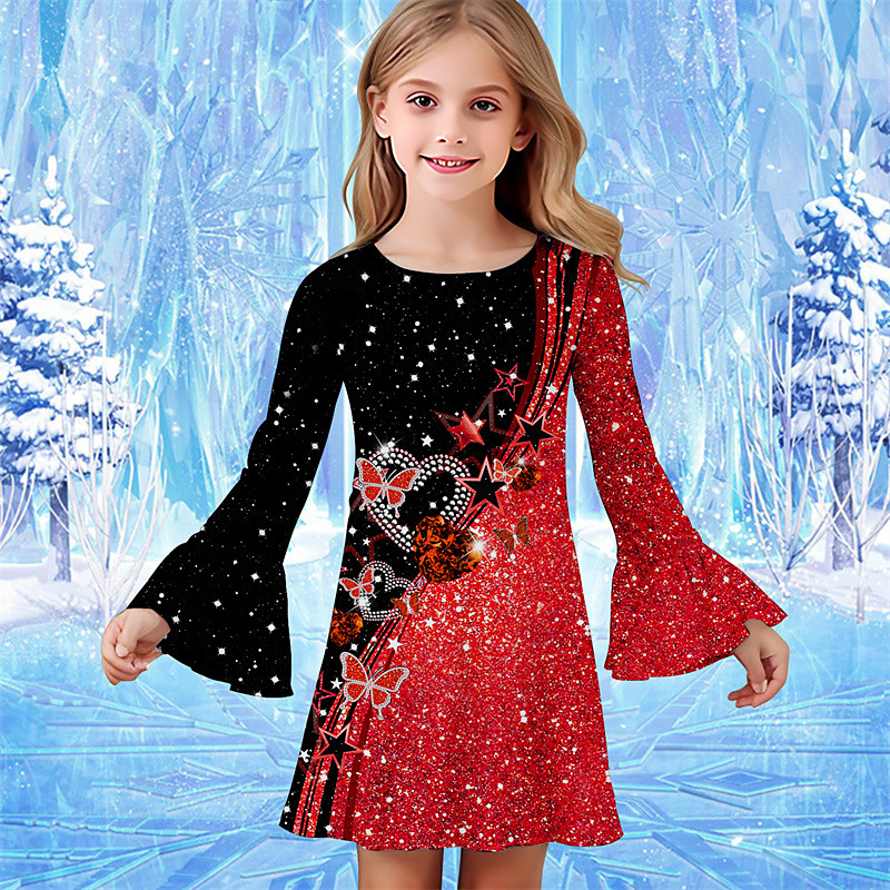 Girls' 3D Butterfly Dress Long Sleeve 3D Print Fall Winter Sports Outdoor Daily Holiday Cute Casual Beautiful Kids 3-12 Years Casual Dress A Line Dress Above Knee Polyester Regular Fit