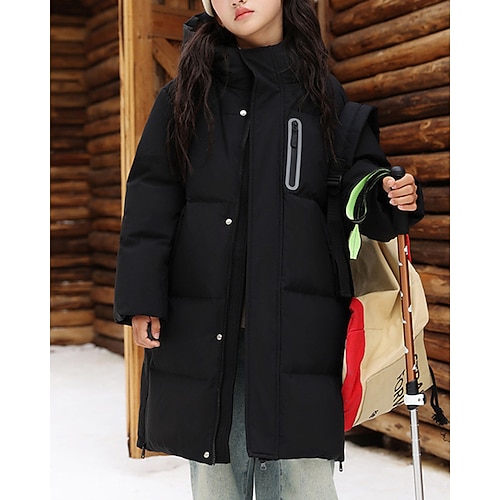 Bambini Ragazze Giacca in piuma Giacca da esterno Giacca Imbottita Tinta unica Sport Tasca Tenere al caldo Antivento All'aperto Cappotto Capispalla 4-12 Anni Inverno Nero Bianco Verde militare