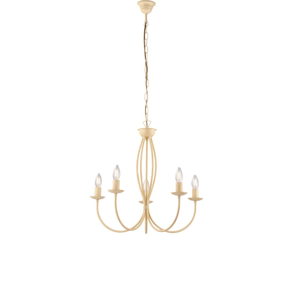 Lampadario Rustico Botte 5 Luci In Ferro Battuto Decapè Avorio