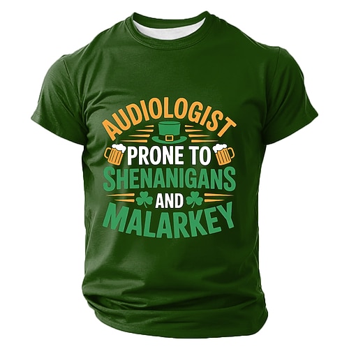 St. Patrick Herren Grafik Oktoberfest-Bier T Shirt Kurzarmshirt T-Shirt Kurzarm T-Shirt 3D-Druck Rundhalsausschnitt Hemd Urlaub Mode Designer Party St.Patrick's Day Ferien Grün 1# Grün Grün 2 Sommer