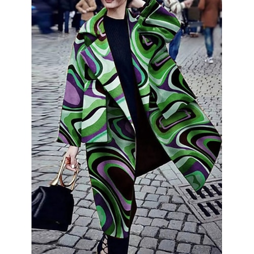 Per donna Cappotto Invernale Giacca Invernale Confortevole Traspirante Stampato Casual Geometrico Vacanza Streetwear Casuale Abbigliamento quotidiano Monopetto Lungo Collo ripiegato Vestibilità comoda