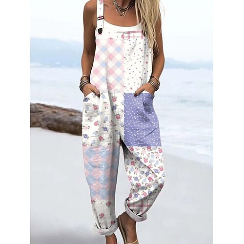 Per donna Tuta Attivo Floreale Senza Maniche Senza maniche Harem Collo quadrato Patchwork Tasca Quotidiano Spiaggia Vestibilità comoda Blu Rosa Viola Estate