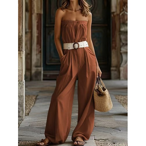 Per donna Normale Tuta Vacanza Tinta unica Senza Maniche Gamba larga Senza Spalline Tasca Streetwear Ferie Vestibilità comoda Blu Nero Bianco Estate