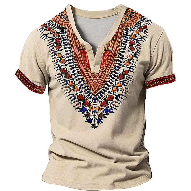 African Pattern V Neck Men's Ethnic Style 3D Print T shirt Tee Henley Shirt Casual Daily T shirt Khaki Gray Short Sleeve Henley Shirt Summer Clothing Apparel S M L XL 2XL 3XL